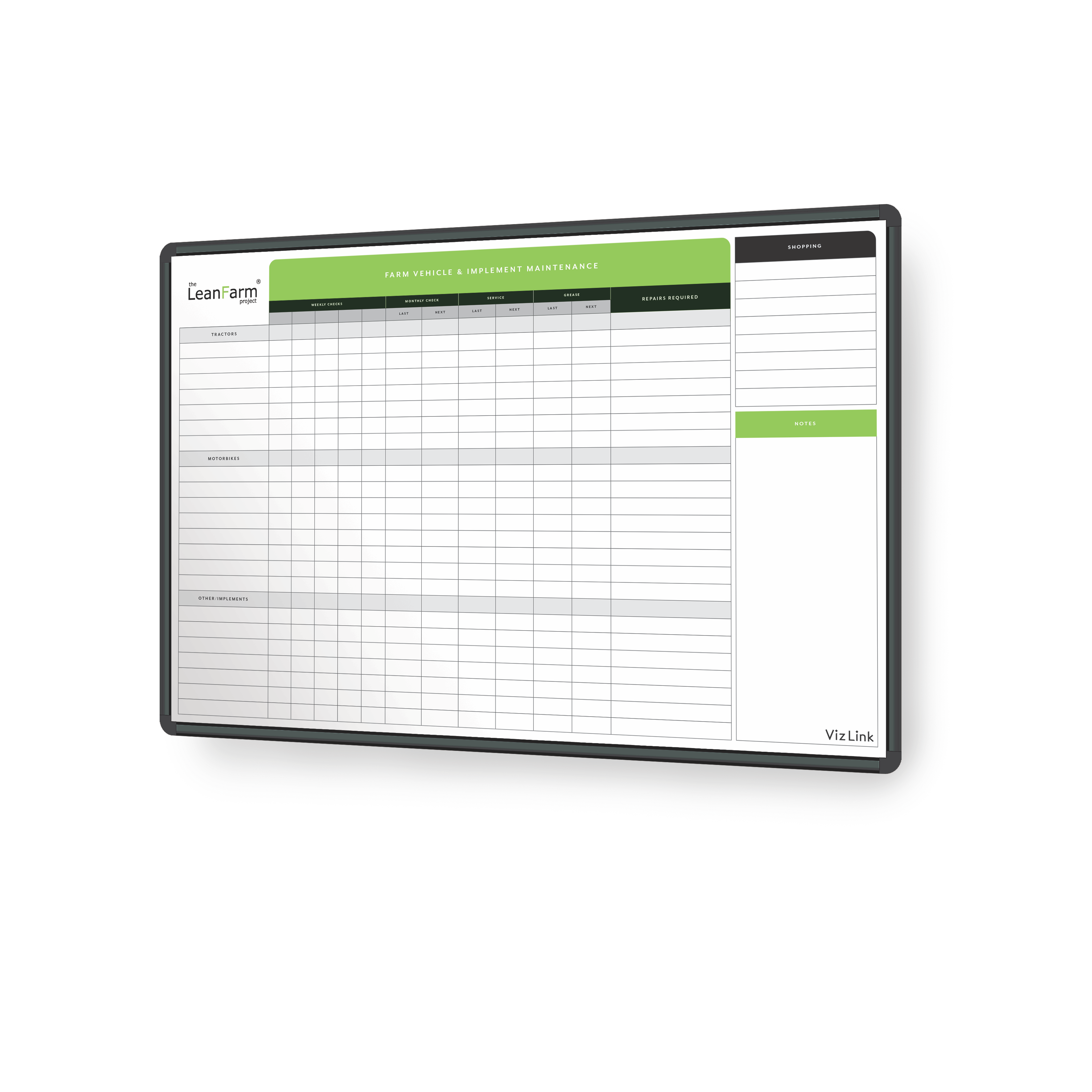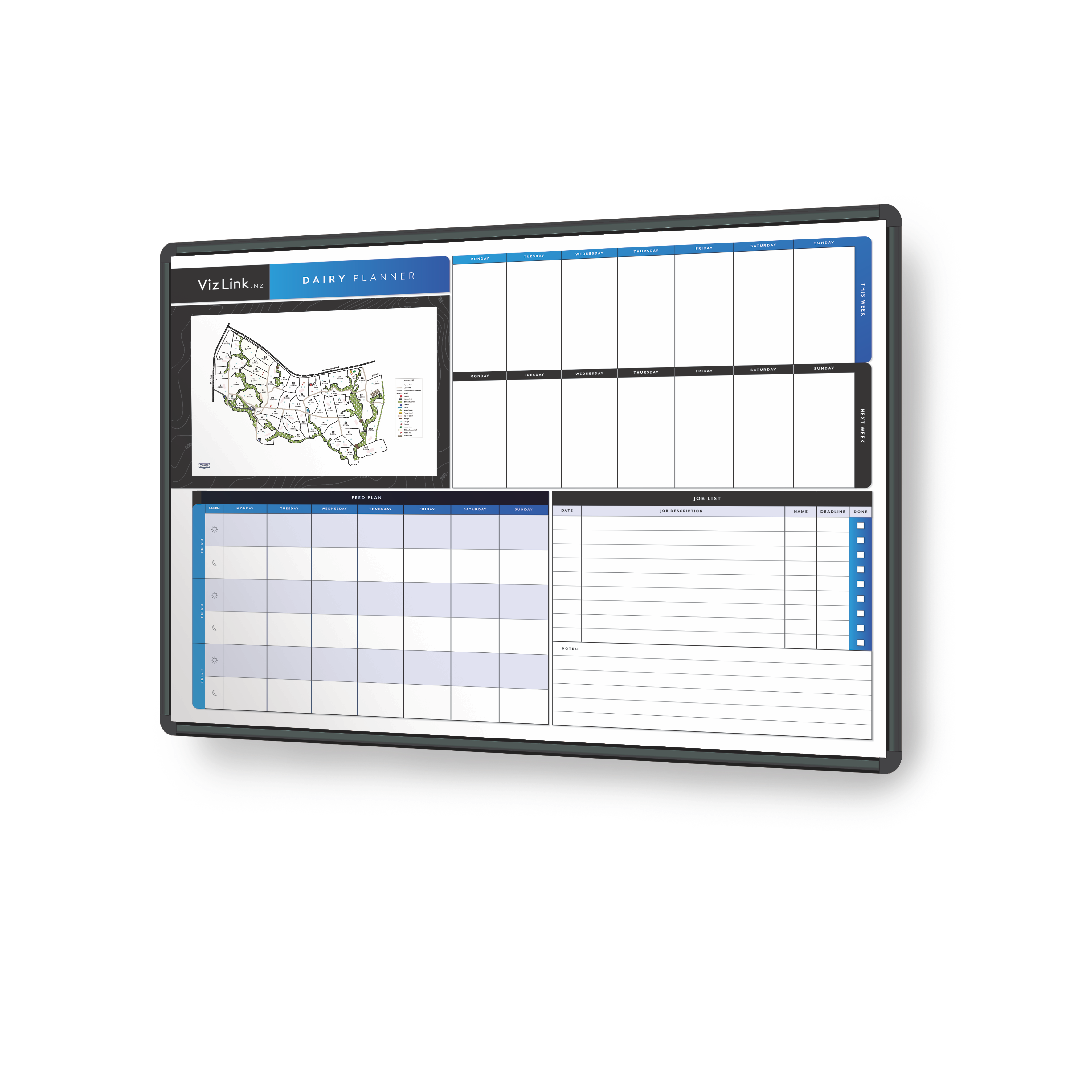 We are proud to collaborate with Jana Hocken, founder of the Lean Dairy Project and a leading voice in Lean Dairy management. Jana has been a supporter of Vizlink since day one and continues to champion the use of our tools on farms across New Zealand. She worked with us to design the Farm Vehicle Maintenance Whiteboard and regularly recommends our Dairy Planner, Dairy Management, and Drystock Planner boards as practical tools that help farmers simplify systems, improve efficiency, and stay organised. We value working alongside Jana and supporting her mission to bring Lean thinking to farming.